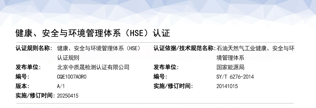 健康、安全與環(huán)境管理體系(HSE)認(rèn)證